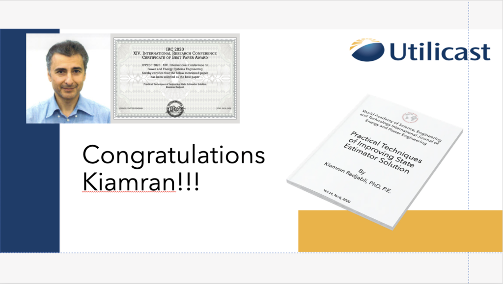 Dr. Kiamran Radjabli published his latest paper, Practical Techniques of Improving State Estimator Solution, in the World Academy of Science, Engineering, and Technology International Journal of Energy and Power Engineering.